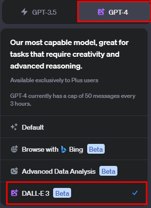 2. GPT-4에 마우스를 올려놓으면 나오는 영역에서 DALL·E 3를 클릭