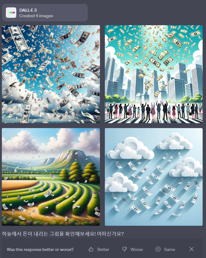 나는 언제 DALL·E 3이 적용되나 계속 기다리고 있었는데 드디어 도입됐다.