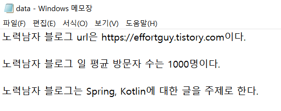 별 다른 형식이 있는 건 아니다. 아래와 같이 메모장으로 제공해줄 데이터를 작성해서 제공했다.