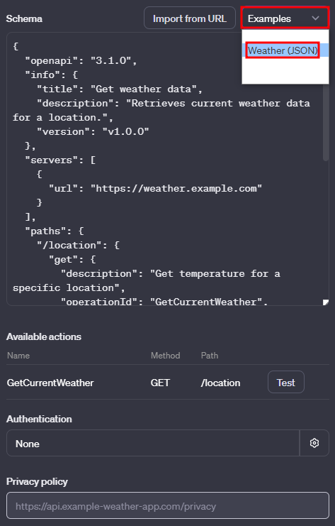 액션을 사용하면 OpenAI가 이제 사용자의 API에 대한 OpenAPI 명세를 호스팅합니다. 이는 더 이상 자신의 OpenAPI 명세를 호스트할 필요가 없다는 것을 의미합니다. 기존 OpenAPI 명세를 가져오거나 GPT 생성자의 UI를 사용하여 처음부터 새로운 명세를 만들 수 있습니다.