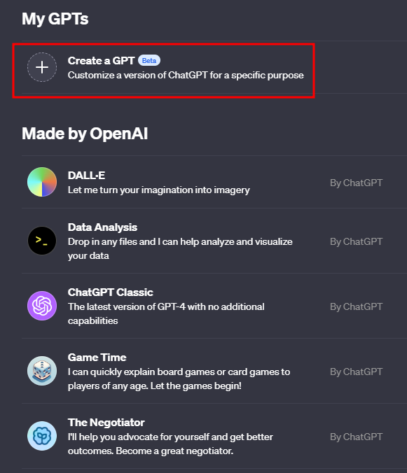이번 포스팅에선 나만의 Custom ChaptGPT를 만들 수 있는 GPTs라는 기능이 생겨서 알아보려고한다.