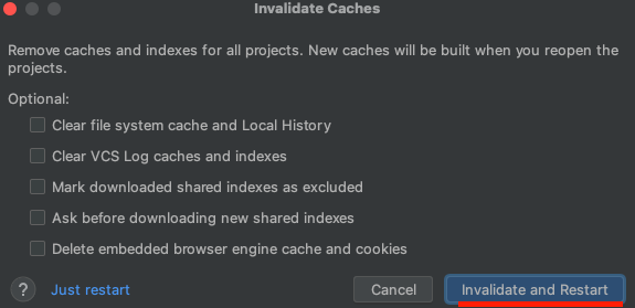 shift 2번 눌러서 invali 검색 -> Invalidate Caches... 엔터