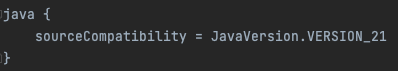 gradle에 Java 버전을 21로 다 세팅해놨다.