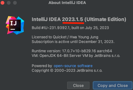 내 IntelliJ 버전을 확인해보니 2023.1.5다. 그렇다.