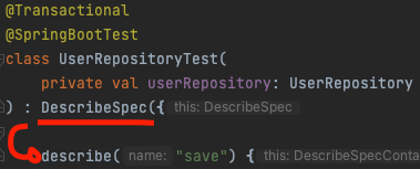 나는 DescribeSpec을 사용하고 있기 때문에 영향을 받았다.
