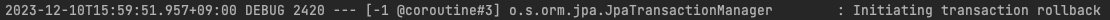 로그를 보면 transaction begin, rollback이 잘 나오는 걸 봐서는 뭔가 설정이 된 거 같긴하다.