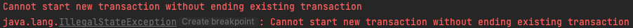 java.lang.IllegalStateException: Cannot start new transaction without ending existing transaction 에러가 발생한다.