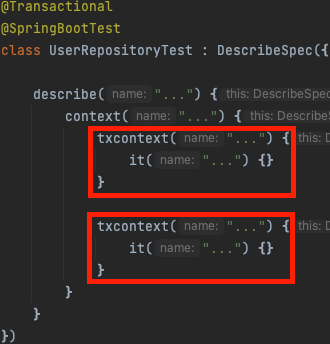 이번 포스팅에선 Kotest에서 DescribeSpec의 context, BehaviorSpec의 when 단위로 @Transactional 동작하게 하는 방법에 대해 알아보겠다.