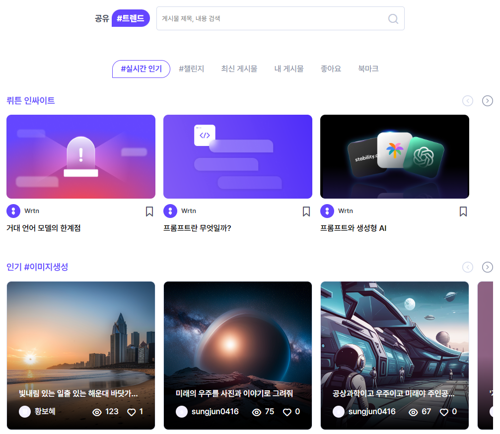 공유 트렌드는 다른 사람이 작성한 결과물을 볼 수 있는 곳이다.