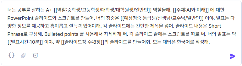 채팅창으로 이동되고 위에서 본 프롬프트가 붙여넣기 되어있다.