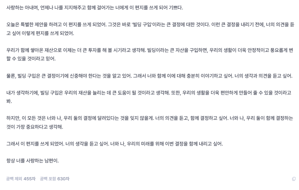 ㅎㅎㅎ 아래와 같이 구구절절한 편지 형태의 글이 나온다.