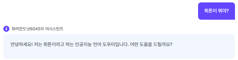 질문을 하면 아래처럼 나온다. 속도가 쪼금 느린 거 같으면서도 빠른 거 같다.