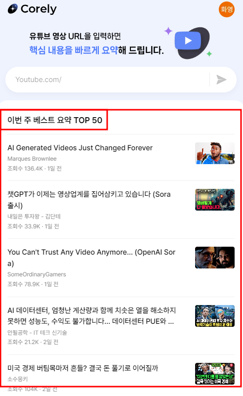 내 시간을 아껴주는 유튜브 영상 핵심 요약 서비스 - Corely 코얼리