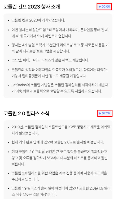 바로 그 아래에는 영상 전체에 대한 요약본이 나온다.