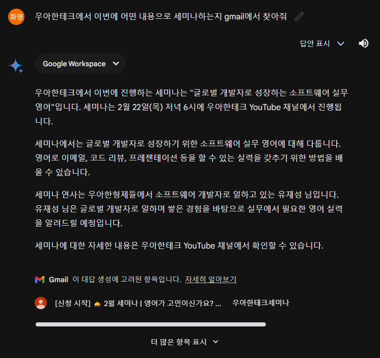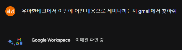와.. 메일에서 우아한테크 세미나 내용을 찾아서 알려준다. 이 기능 잘 쓰면 진짜 편할 거 같다.
