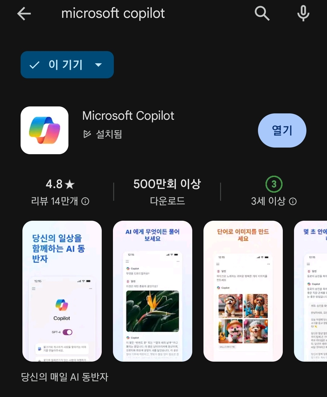 각 Store에 들어가서 microsoft copilot 검색해서 설치할 수 있다.