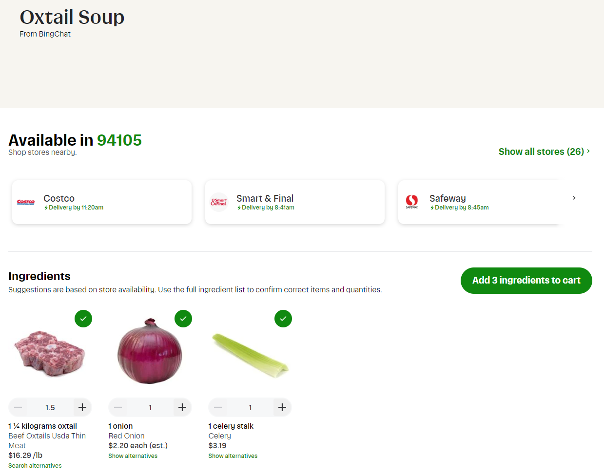 instacart는 여러 재료 사이트들을 모아놓은 곳으로 보인다.