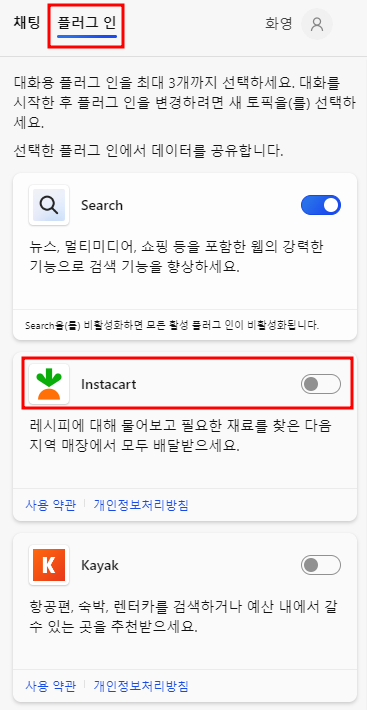 Instacart를 활성화한 후 어떤 걸 제공하는지 보겠다.