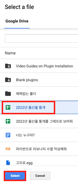 (3) 업로드할 파일 클릭 -> Select 클릭